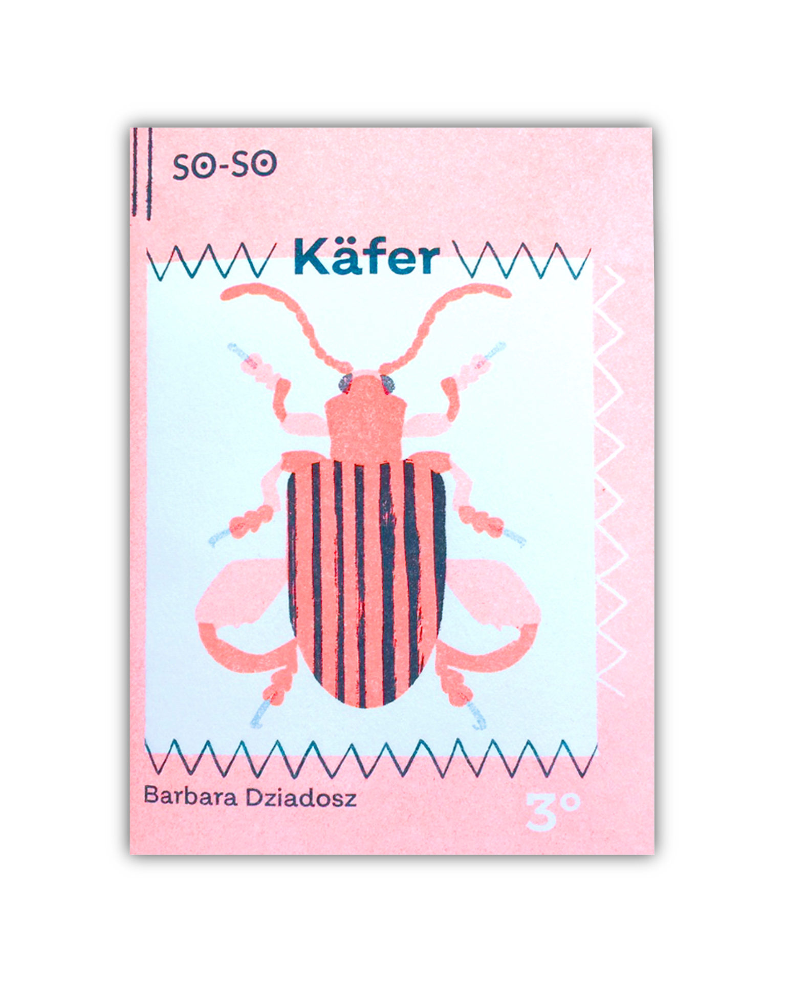 DIN A6, 32 pages, colour illustrations throughout, 2-colour riso cover, with postcard